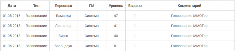 Мы автоматизировали выдачу наград за голосование на MMOTOPe. Теперь можно голосовать и получать за это уровни! Подробнее в этой теме. Там же находится топ самых голосующих.