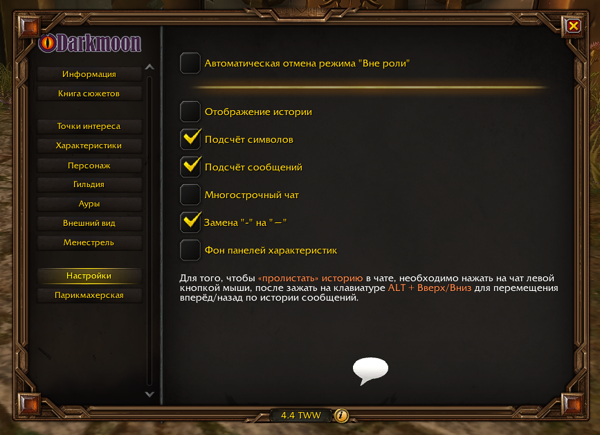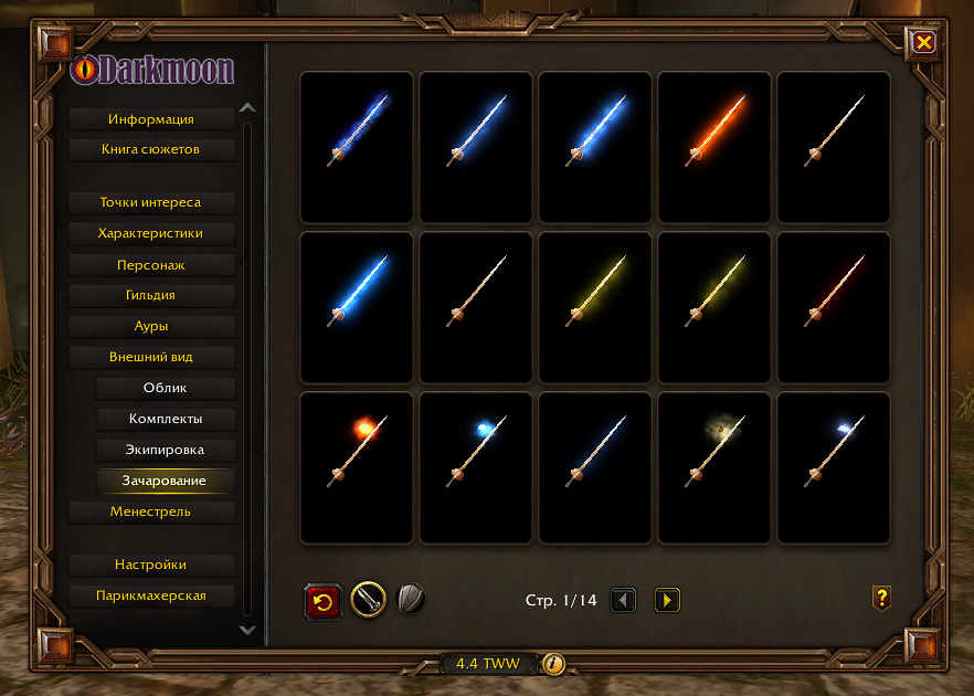 Обратите внимание, что актуальная версия аддона Darkmoon для текущего обновления — 4.4 TWW, используйте лаунчер для автоматического получения всех обновлений своевременно.