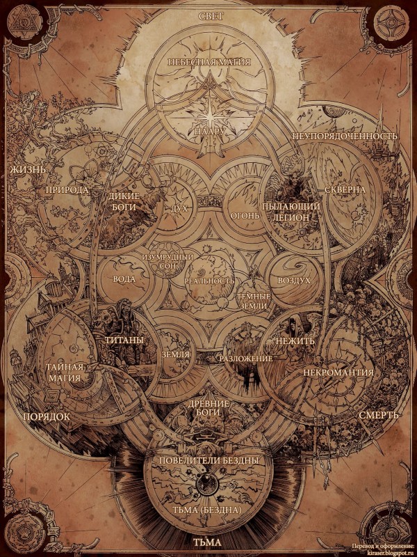 Свет и Бездна создали Великую Тьму и Круговерть Пустоты. Титаны Пантеона начинают формировать миры Великой Тьмы. Владыки Бездны посылают Древних Богов во Тьму. Демоны из Круговерти Пустоты начинают проникать во Тьму. |