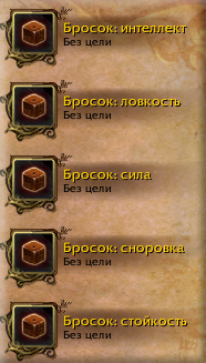 Вместо стандартных для World of Warcraft предусмотрено 8 характеристик: сила, ловкость, интеллект, критический шанс, стойкость, сноровка, воля, дух. Они не связаны со стандартными (механическими) параметрами и изначально равны 1. На старте персонаж имеет 5 очков здоровья.