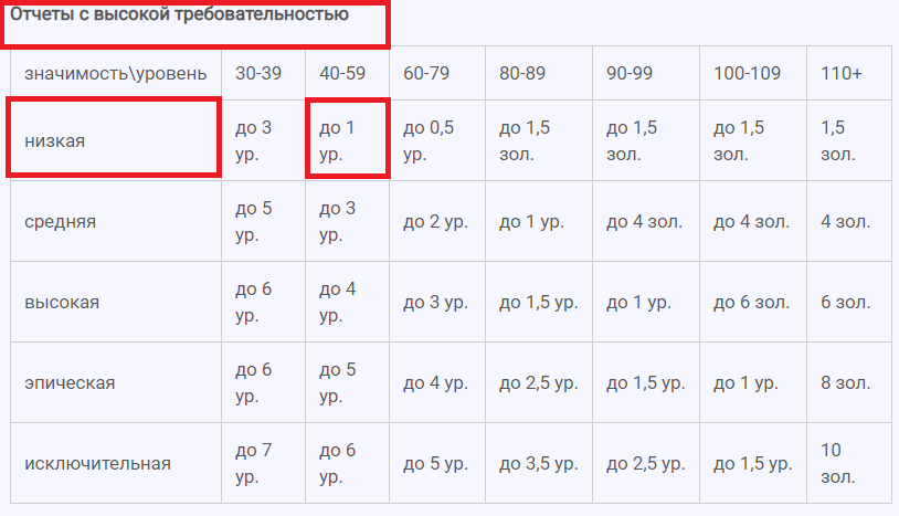 В случае, если в иных отчётах выставлен уровень больше, чем положен по таблице, Вы сможете составить обращение о некорректном вердикте рецензента либо сообщить об этом рецензенту напрямую (или написать мне, как старшему рецензенту, о некорректном вердикте проверяющего. Мой Discord: AnyTweetAny#9517).