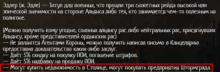 15.1. Касательно нетитулованных личностей, которые имеют недвижимость в Штормграде. Данный момент объясняется тем, что игроки могли приобрести POI до введения новой системы.