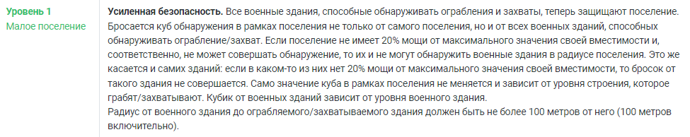 Хочу напомнить, что ранее, когда бонусы только появились, в радиусе поселения обнаружить ограбление/захват ТИ имела возможность только ТИ самого поселения, а все военные здания, что находились в её радиусе — бездействовали.