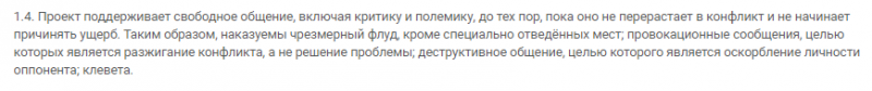 Конкретно нас интересует эта строчка: «Таким образом, наказуемы чрезмерный флуд, кроме специально отведённых мест».